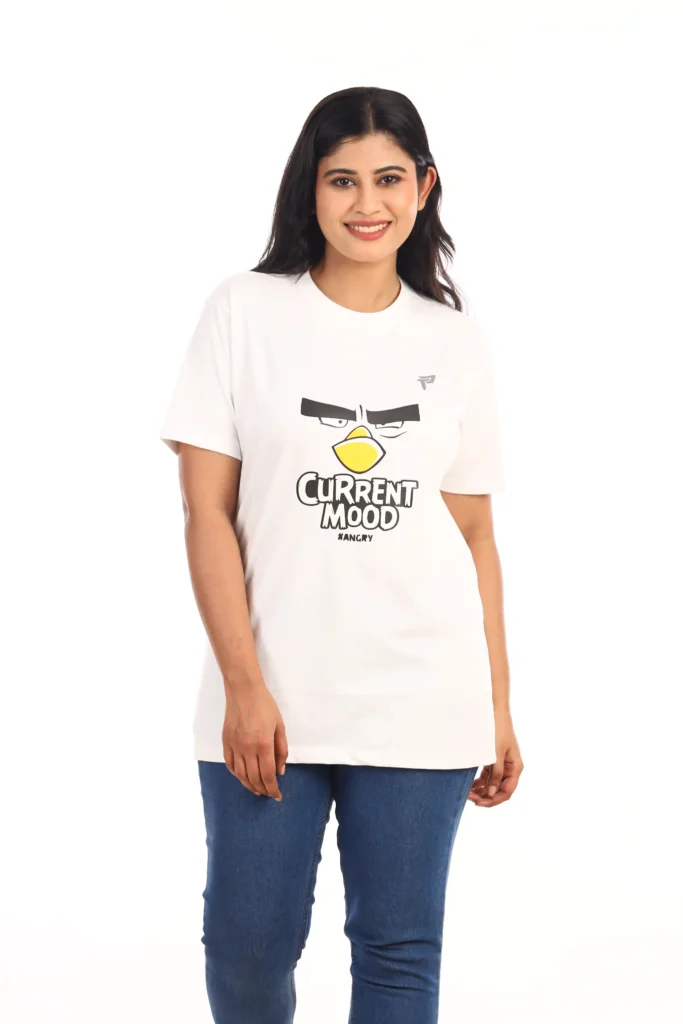 IZARNO -Women Premium White Oversized drop shoulder Current Mood printed T-Shirt